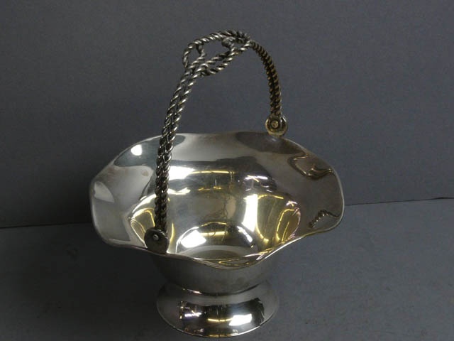 E.P. SILVER BON BON DISH WITH ROPE TWIST SWING HANDLE 16 CM DIAM.