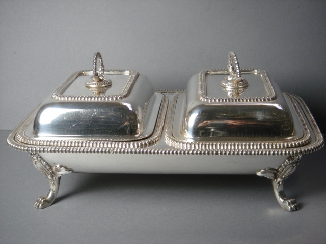 E.P. SILVER BREAKFAST SET INC. TWO ENTREE DISHES IN STAND 42 CM