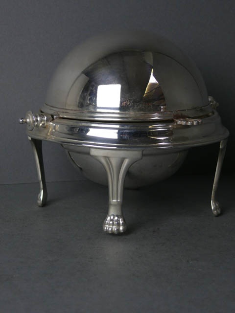 E.P. SILVER BUTTER DOME WITH LION FEET 15 CM DIAM.