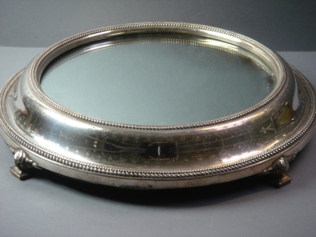 E.P. SILVER CAKE STAND CIRCULAR WITH MIRROR TOP 40 CM DIAM.