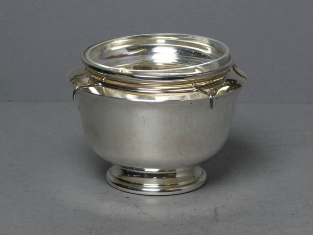 E.P. SILVER CAVIAR DISH PLAIN WITH GLASS BOWL AND SPIDER SUPPORT