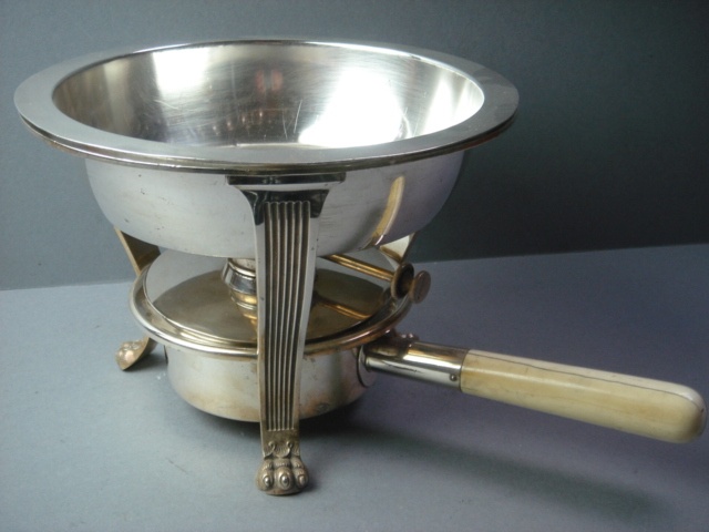 E.P.SILVER CHAFING DISH WITH BONE HANDLE ON STAND WITH BURNER 25 CM