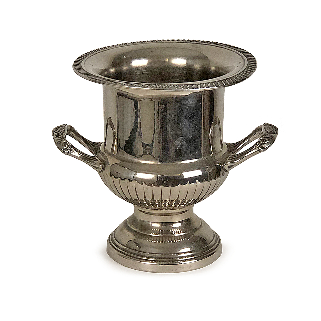 E.P. SILVER CHAMPAGNE BUCKET / COOLER CAMPANA FORM WITH TWIN HANDLES 26 CM HIGH 29 CM WIDE