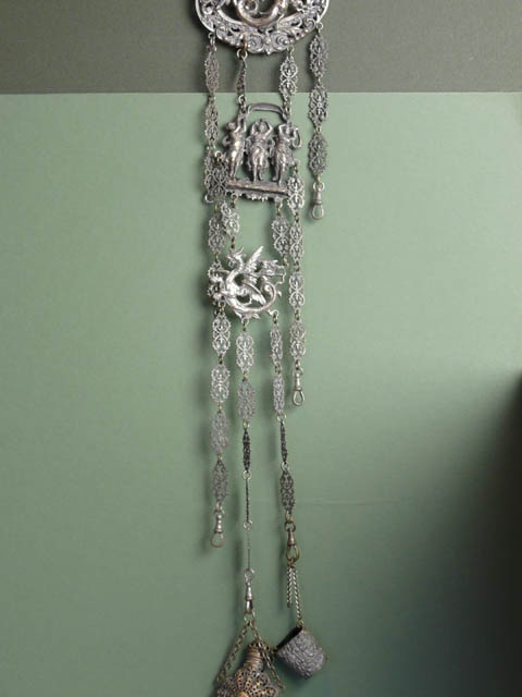 E.P. SILVER CHATELAINE BELT CLIP MERMAID AND DRAGON DESIGN 45 CM LONG