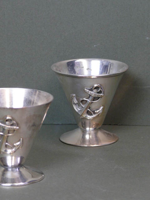 E.P SILVER COCKTAIL CUP WITH CHAIN AND ANCHOR MOTIF