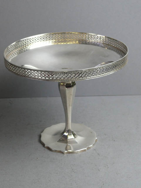 E.P. SILVER COMPORT / CAKE STAND MAPPIN AND WEBB PIERCED RIM 20 CM DIAM.