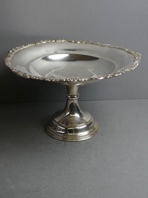 E.P. SILVER COMPORT / CAKE STAND WITH FLORAL RIM 30 CM DIAM.