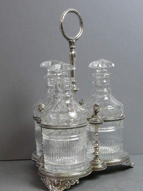 E.P. SILVER CONDIMENT / RELISH STAND THREE BOTTLE COMPARTMENTS
