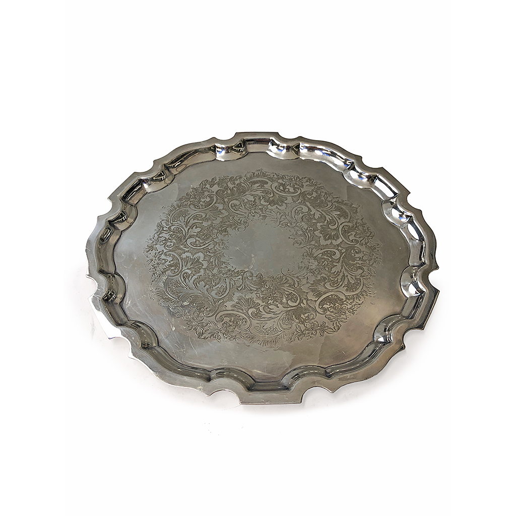 E.P. SILVER ENGRAVED CIRCULAR CHIPPENDALE SALVER 26 CM DIAM