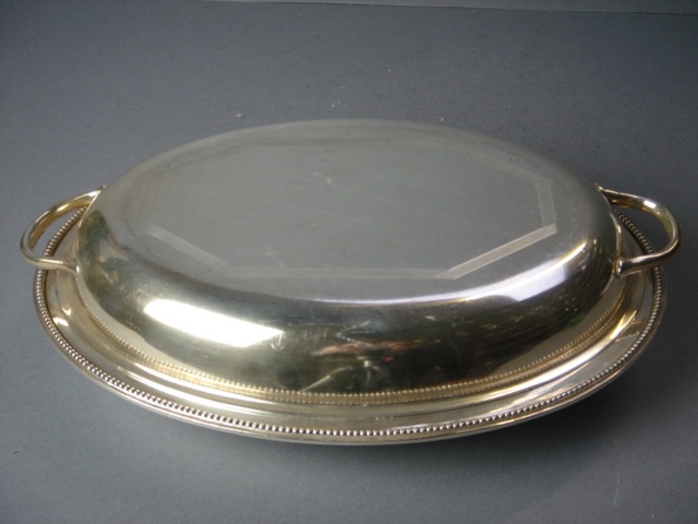 E.P. SILVER ENTREE DISH / TUREEN ENGINE TURNED ENGRAVING OVAL 28 CM