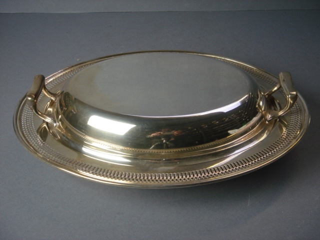 E.P. SILVER ENTREE DISH / TUREEN OVAL WITH PIERCED RIM 31 CM