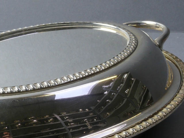 E.P. SILVER ENTREE DISH WITH LID TWIN HANDLES EGG AND DART BORDER 28 CM