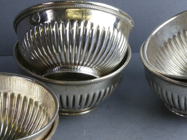 E.P. SILVER FINGER BOWL FLUTED WITH BEAD RIM (X6)