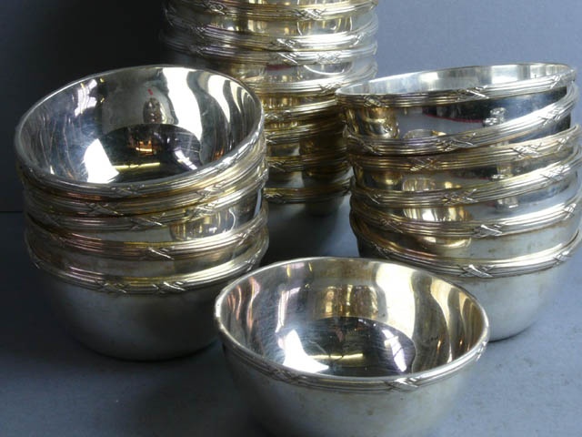 E.P. SILVER FINGER BOWL WITH RIBBON AND THREAD RIM (X23)
