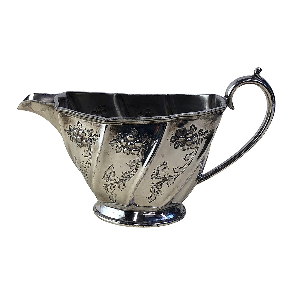 E.P. SILVER FLUTED FRUIT EMBOSSED DECORATED CREAM JUG