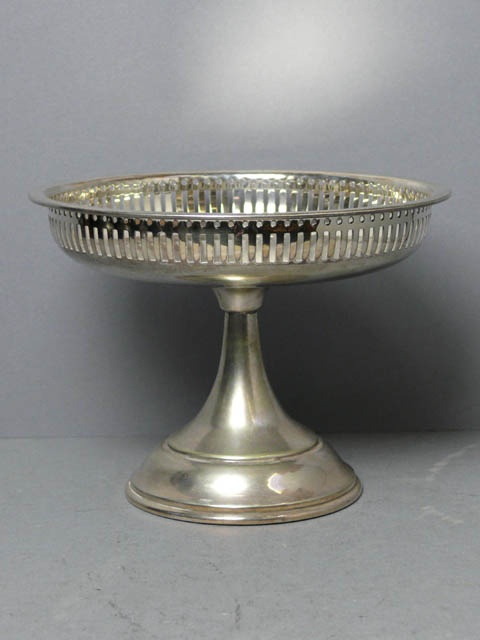 E.P. SILVER FRUIT COMPORT WITH PIERCED GALLERY EDGE 21 CM DIAM.