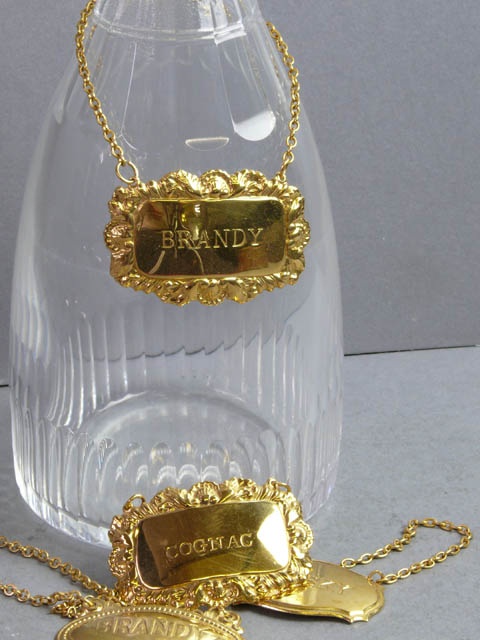 E.P. SILVER GILT DECANTER LABLE WITH CHAIN (X6)