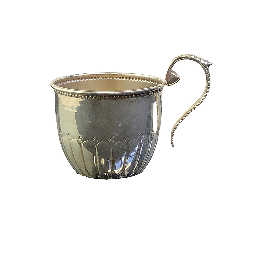 E.P. SILVER HALF FLUTED PUNCH CUP WITH BEAD EDGE RIM (X6)