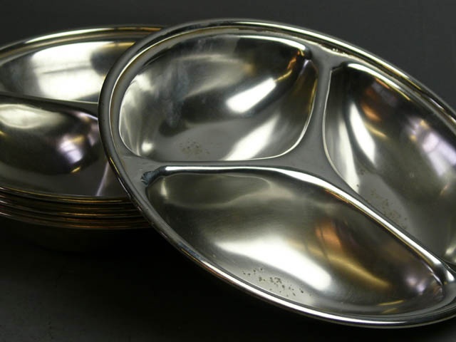 E.P. SILVER HOTEL VEG DISH DIVIDED THREE SIDES 23 CM DIAM (X6)