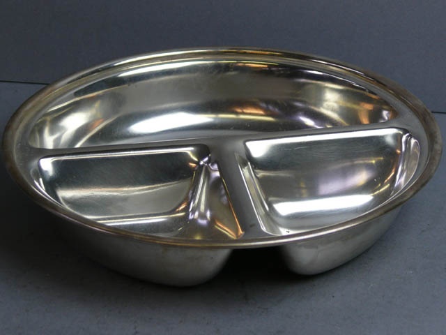 E.P. SILVER HOTEL VEG DISH DIVIDED THREE SIDES 24 CM DIAM. (X5)