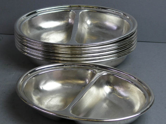 E.P. SILVER HOTEL VEG DISH OVAL DIVIDED TWO SIDES 20 CM LONG (X7)