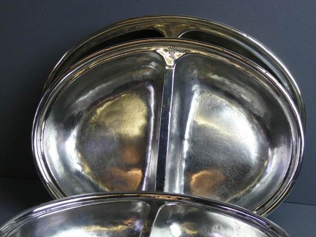 E.P. SILVER HOTEL VEG DISH OVAL DIVIDED TWO SIDES 30 CM LONG (X4)