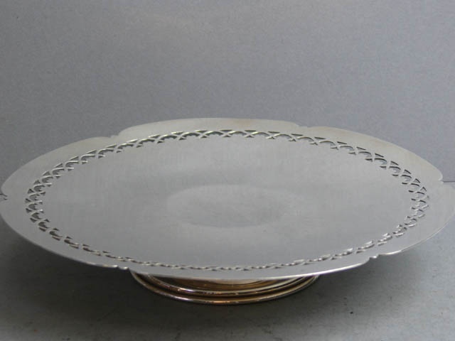 E.P. SILVER LOW PIERCED RIM CAKE STAND ON FOOT 24 CM DIAM.