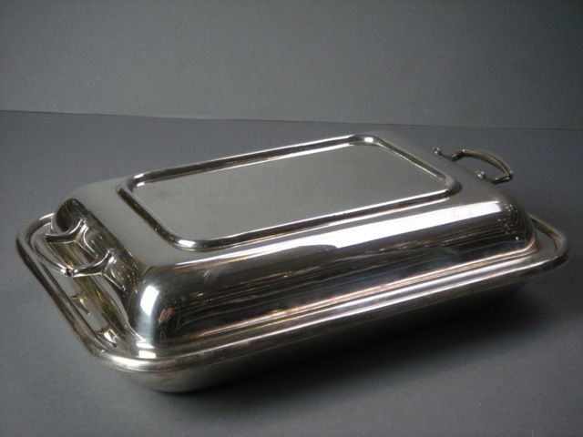 E.P. SILVER OBLONG ENTREE DISH WITH LID FIXED HANDLES 28 CM