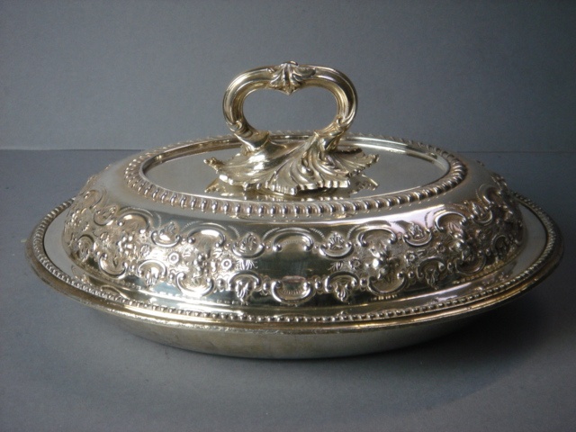 E.P. SILVER ORNATE ENTREE DISH / TUREEN OVAL 31 CM