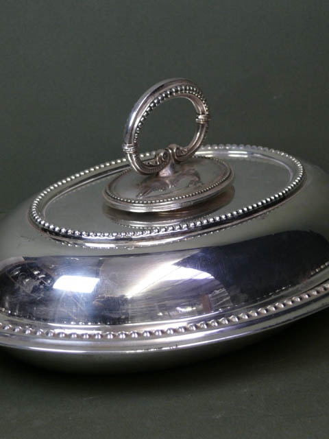 E.P. SILVER OVAL ENTREE DISH BEAD EDGED WITH COVER 29 CM LONG