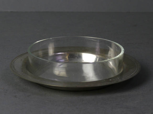 E.P. SILVER PARMESAN DISH WITH GLASS LINER 15 CM DIAM.