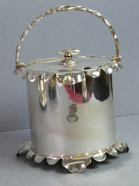 E.P. SILVER PRESERVE JAR WITH LID BUCKET HANDLE AND ENGRAVED STAG HEAD MOTIF