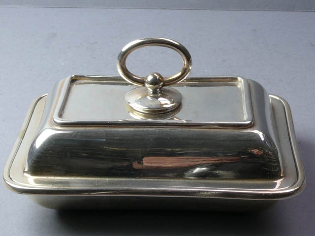 E.P. SILVER RECTANGULAR ENTREE DISH WITH LID 20 CM