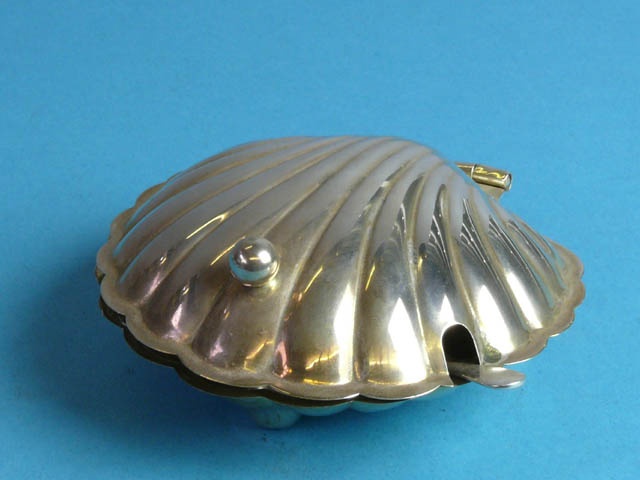 E.P. SILVER SCOLLOP SHELL BUTTER DISH WITH HINGED LID