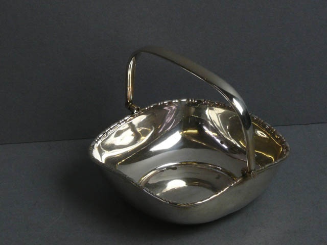 E.P. SILVER SMALL SQUARE BON BON DISH WITH SWING HANDLE 10 CM