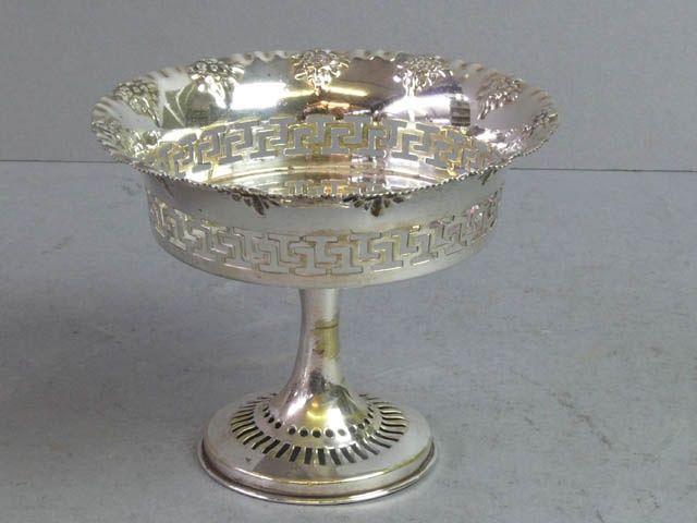 E.P. SILVER SWEET DISH TAZZA WITH PIERCED BOWL AND BASE 15 CM DIAM.