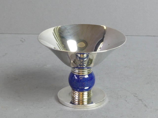 E.P. SILVER SWEET MEAT DISH WITH BLUE LAPIS STEM 10 CM DIAM.