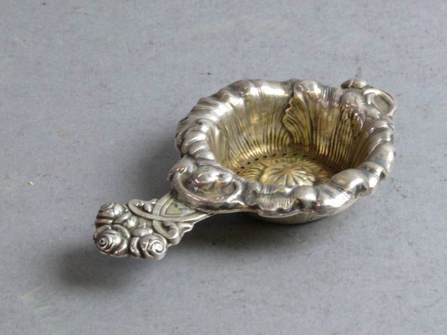 E.P. SILVER TEA STRAINER ART NOUVEAU ORNATE