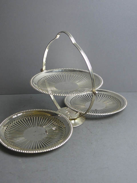 E.P. SILVER TRIPLE CAKE STAND COLLAPSIBLE 41 CM LONG