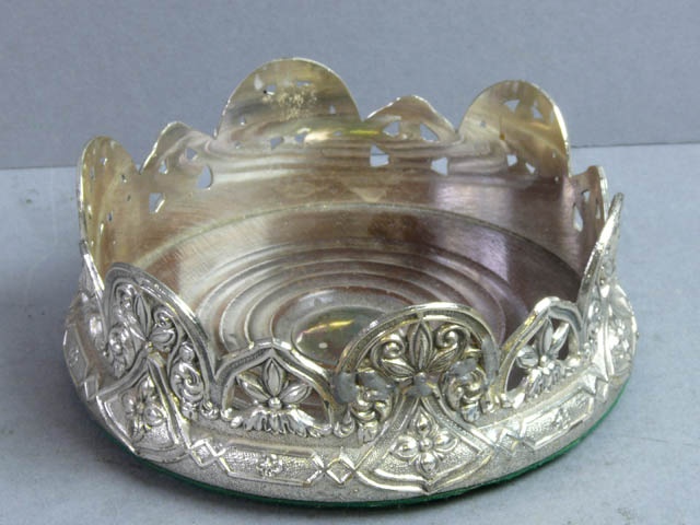 E.P. SILVER WINE COASTER ORNATE CORONET DESIGN MAHOGANY BASE