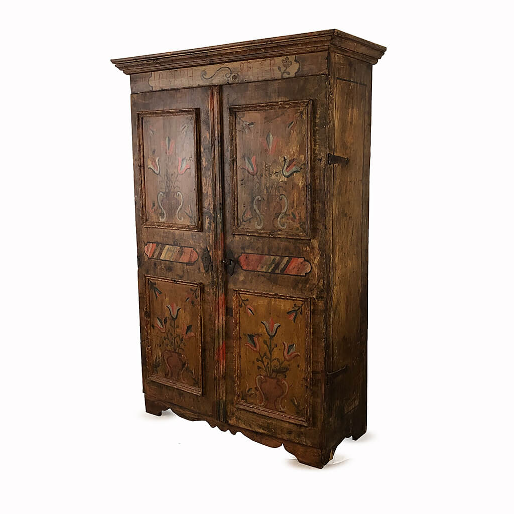 EARLY 17TH CENT SPANISH PAINTED CUPBOARD PANELLED DOORS WITH VASES OF FLOWERS JOSEPH PEGER TO FREIZE 163 CM HIGH 107 CM WIDE 45 CM DEEP
