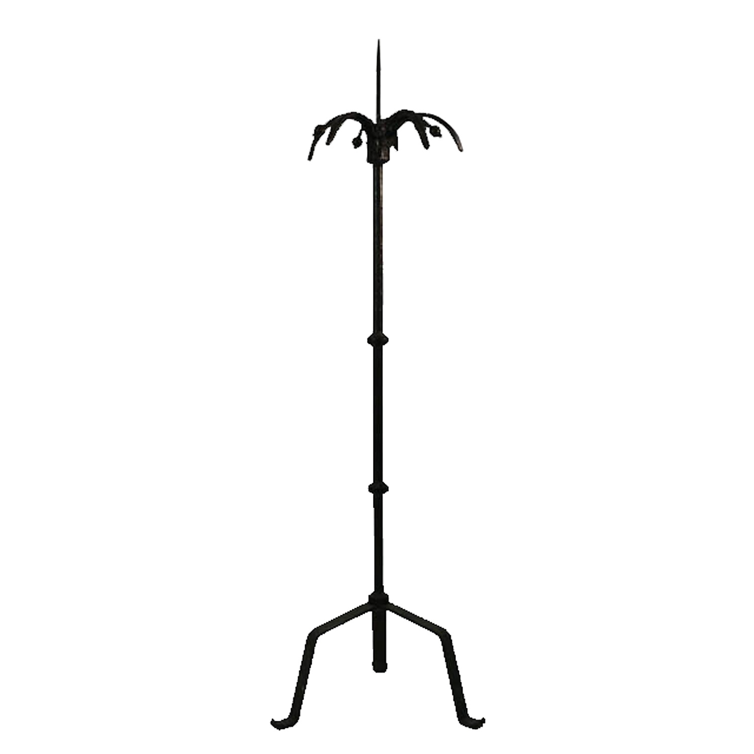 EARLY CANDLE PRICKET WROUGHT IRON FLOOR STANDING PALM LEAF 4 ' 9 /i HIGH (X2)