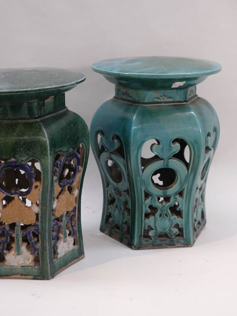 EARLY CHINESE HEXAGONAL TORQUOISE CERAMIC GARDEN STOOL (X4)