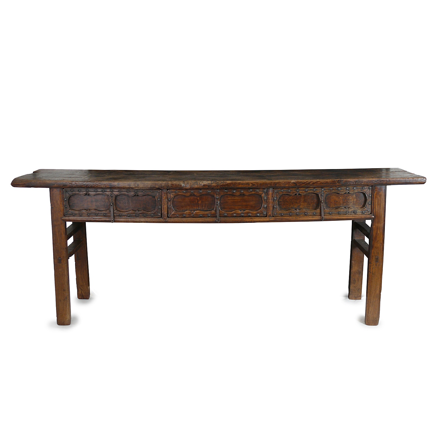 EARLY CHINESE SIDE TABLE WITH THREE DRAWERS QING DYNASTY SHANXI PROVINCE 85 CM HIGH 229 CM LONG 51 CM WIDE