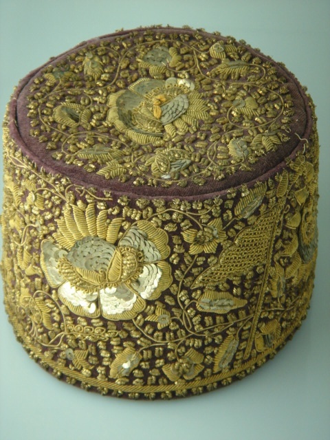 EARLY FEZ HAT FINE GOLD EMBROIDERD INDIAN 19TH CENTURY