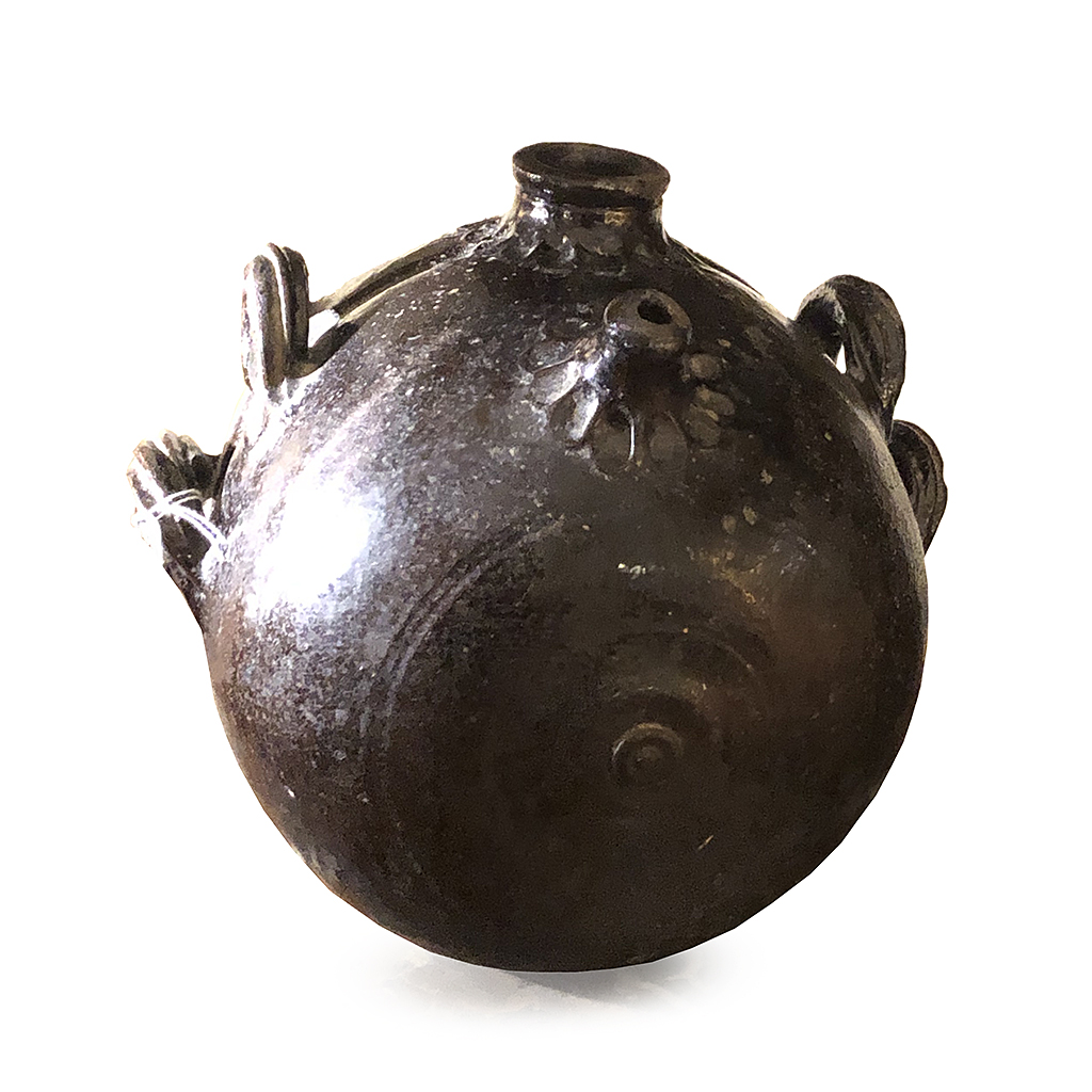 EARLY FRENCH FLASK BROWN GLAZED EARTHENWARE AVIGNON CIRCA 1650