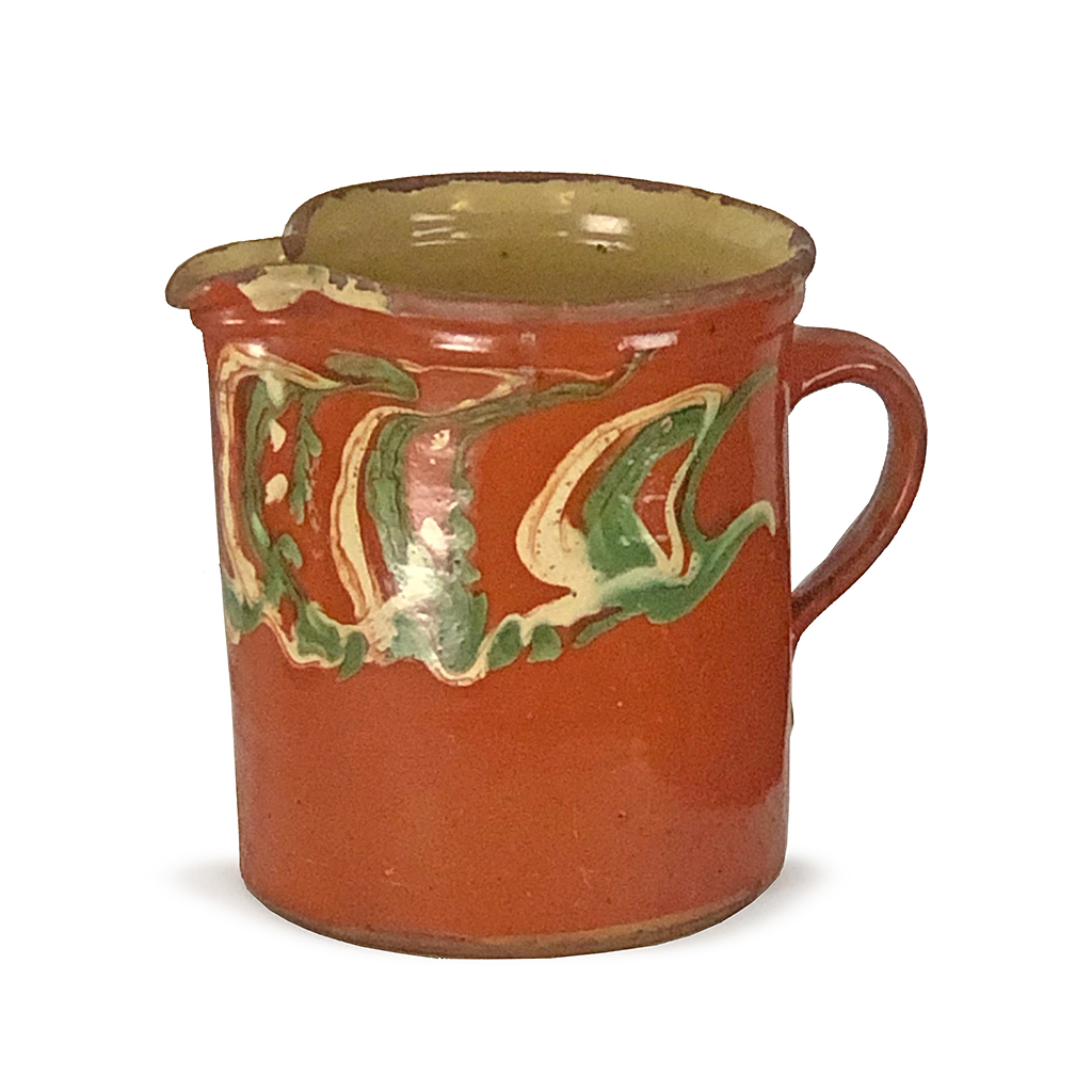 EARLY FRENCH GREEN BROWN AND CREAM GLAZED JUG LATE 19TH CENT 17 CM HIGH