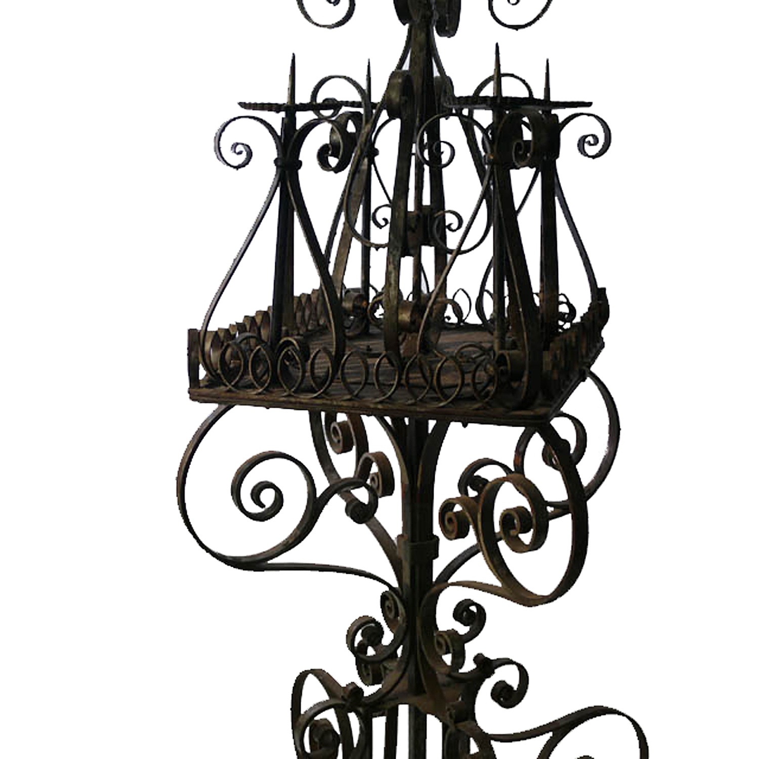 EARLY FRENCH ORNATE STEEL TWO TIER PRICKET CANDELABRA 9 LIGHT 5 ' 9 /i HIGH