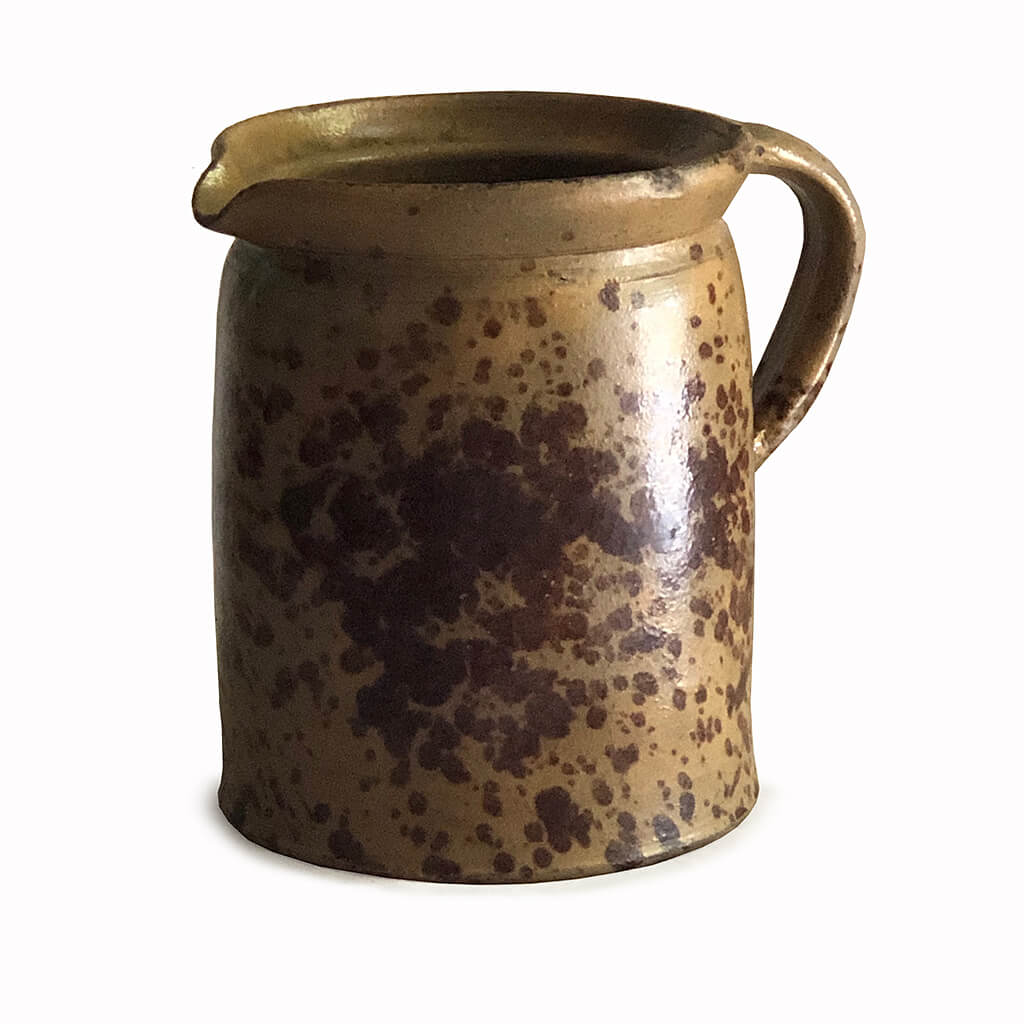 EARLY FRENCH STONEWARE JUG WITH DARK BROWN SPLASH GLAZE 20 CM HIGH