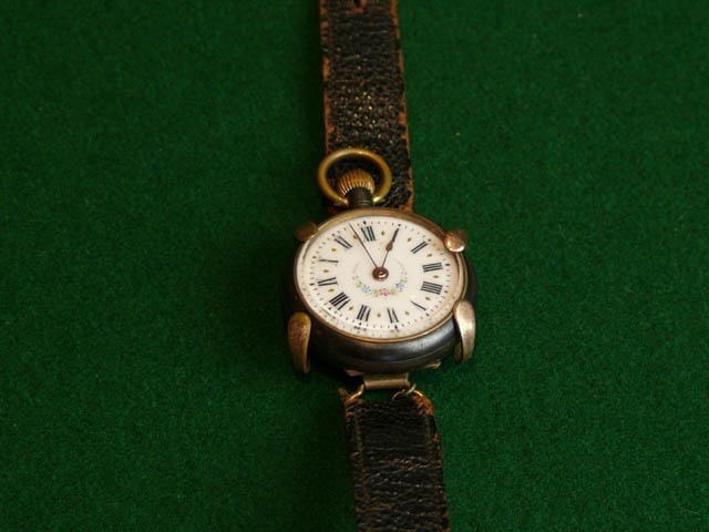 EARLY GUN METAL POCKET WATCH WRIST WATCH ON LEATHER WRISTLET STRAP